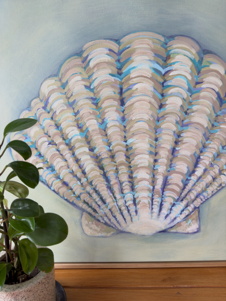 Shells of the Shore grew from my lifelong pull toward coastlines and the quiet rituals of wandering along the tideline. As a child I would crouch in the sand for hours, choosing shells by feel rather than appearance, running my fingers along their ridges and imagining the stories they carried from deeper waters. The scallop shell, with its soft curves and fanlike strength, always felt like a small piece of wisdom offered by the sea.